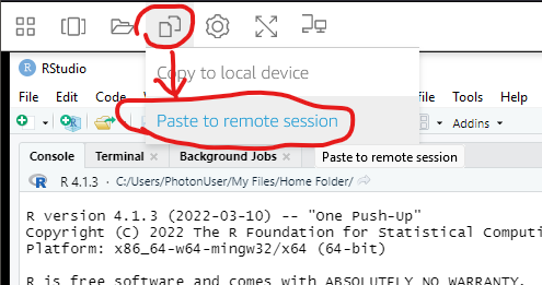 - Click the special paste function in the session toolbar (below picture)